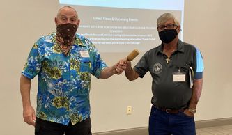 In custom to our American tradition, our ex-president Stan Levinson hands power to our new President Jim Nuara